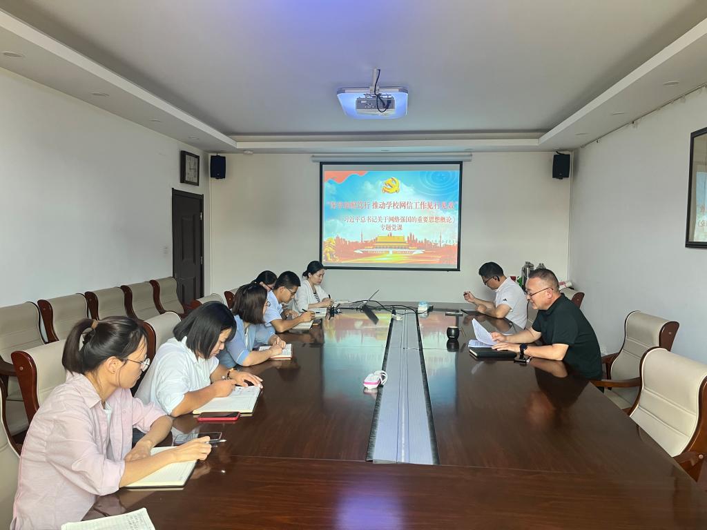 为了确保学习贯彻习近平新时代中国特色社会主义思想主题教育走深走实,8月31日上午,信息化工作办公室党支部书记王智勇在第三会议室做了题为“深学细照笃行 推动学校网信工作见行见效”专题党课,部门全体党员和教职员工参加了学习。