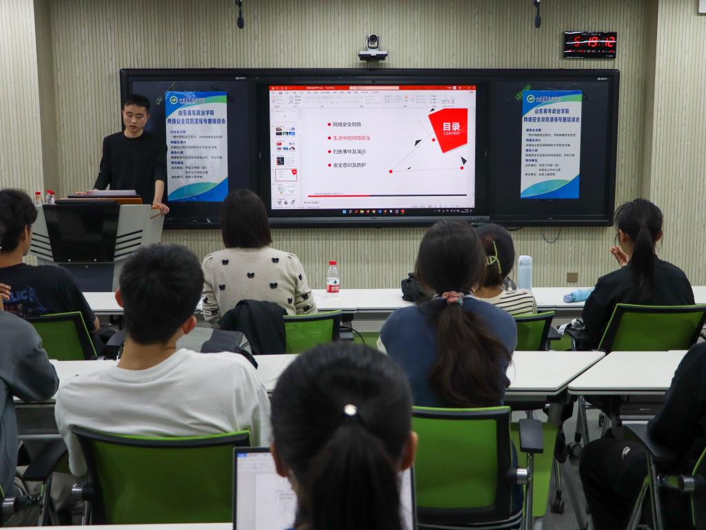 会上专家从网络安全局势、生活中的网络安全、钓鱼事件及演示、安全意识及防护四个方面进行讲述,全面阐述了国家网络安全形势、各种网络攻击及病毒、黑客等特征及防护措施、大学生网络诈骗、如何参与网络攻防大赛等内容,并结合典型事例分析,全面介绍了网络安全的防范方法及措施。