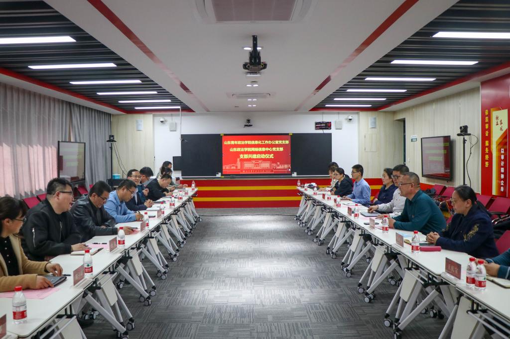 为深入学习宣传贯彻党的二十大精神,进一步发挥党建引领作用,努力构建“资源共享、优势互补、共同提升”的党建工作新格局,推动双方单位党建引领开新局、党建工作上台阶、党员服务有实效。3月14日下午,在知行楼智慧教室508,信息化工作办公室党支部与山东政法学院网络信息中心党支部开展“党建引领•业务赋能”为主题的支部共建活动,双方支部全体党员参加了活动。