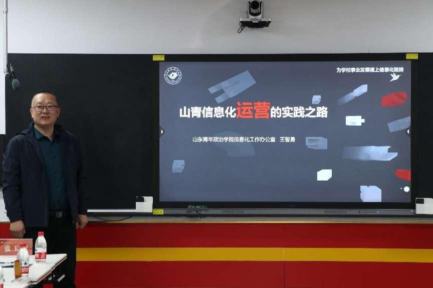 王智勇从总体规划和系统思维是运营的基础、山青信息化建设思路、一站式服务大厅建设与运营、数据治理探索及未来思考、深化信息技术与教育教学深度融合、成效、成绩及几点体会等6方面介绍了学校信息化规划、建设等相关工作。