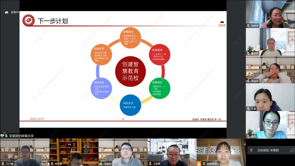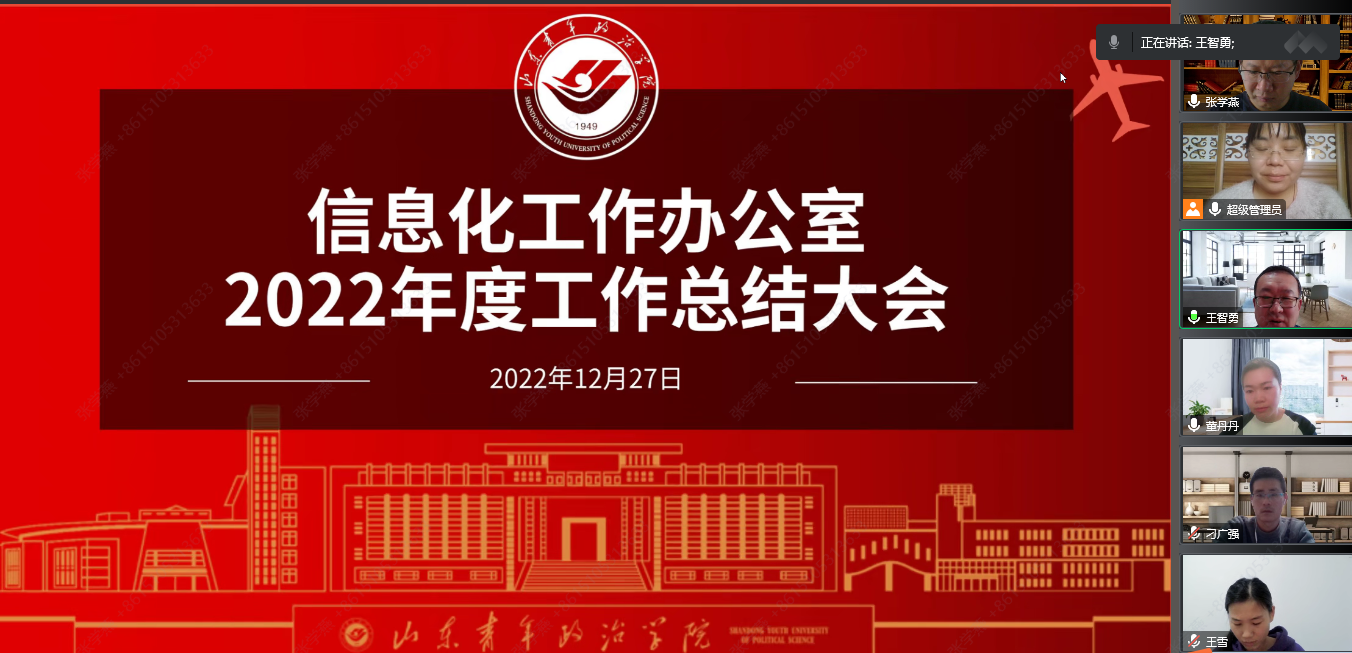 根据学校2022年度考核工作的安排,12月27日下午,信息化工作办公室按照考核程序组织召开年终总结述职线上会议,会议由王智勇主持,全体人员参加了会议。
