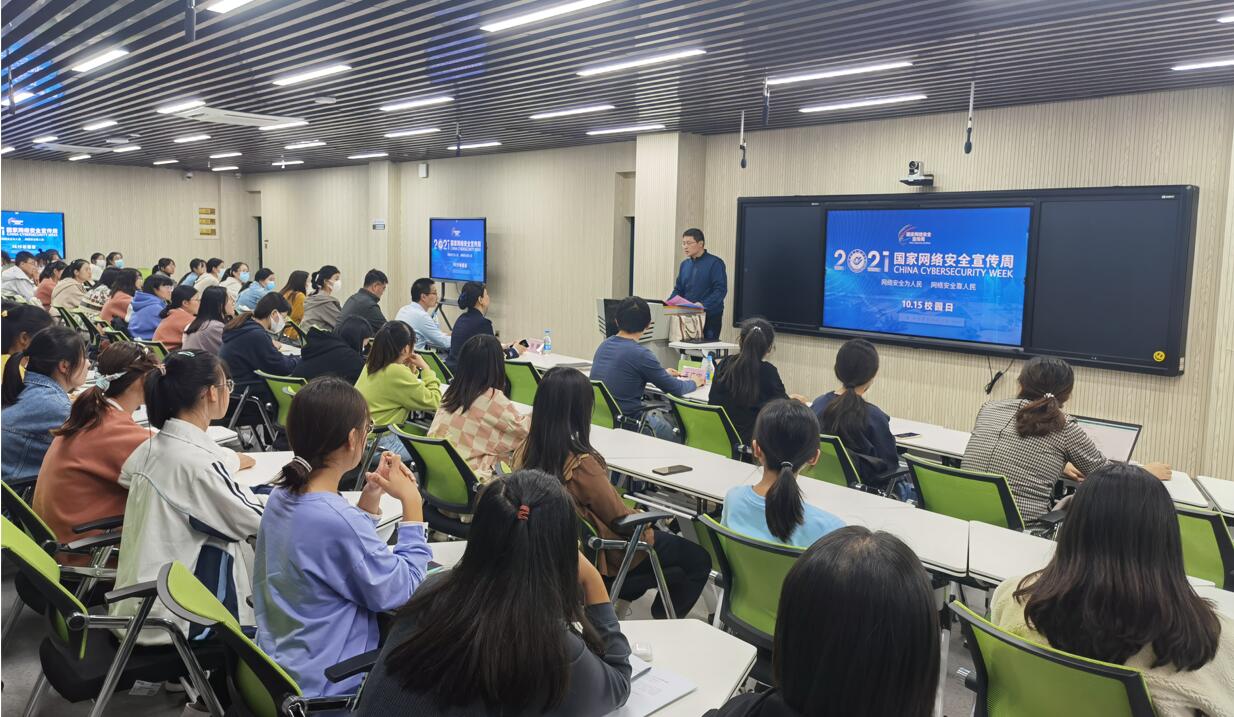 为切实开展好“2021年国家网络安全宣传周”工作部署,推动全校师生参与网络安全宣传教育,提高师生网络安全意识和防患网络安全风险能力,10月15日下午,“2021年国家网络安全宣传周”网络安全专题讲座在我校知行楼智慧教室举办,邀请山东警察学院资深网络安全专家张璇授课。学校宣传部、学生工作部、信息化工作办公室、团委等相关部门的负责同志,及各二级学院的部分辅导员、学生代表参加了本次活动,活动由信息化工作办公室副主任宋果昇主持。