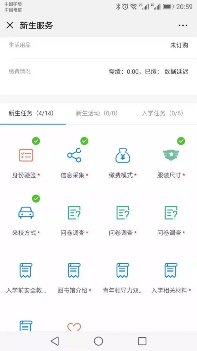 在报到前,随着录取通知书一块发出的,还有一封新生必读,详细的介绍了智慧校园和智慧迎新的使用。新生通过个人微信,关注学校企业微信,就能完成一系列的入学任务、调查问卷,了解学校相关情况,在入学前对学校和大学生活有了充分的了解。