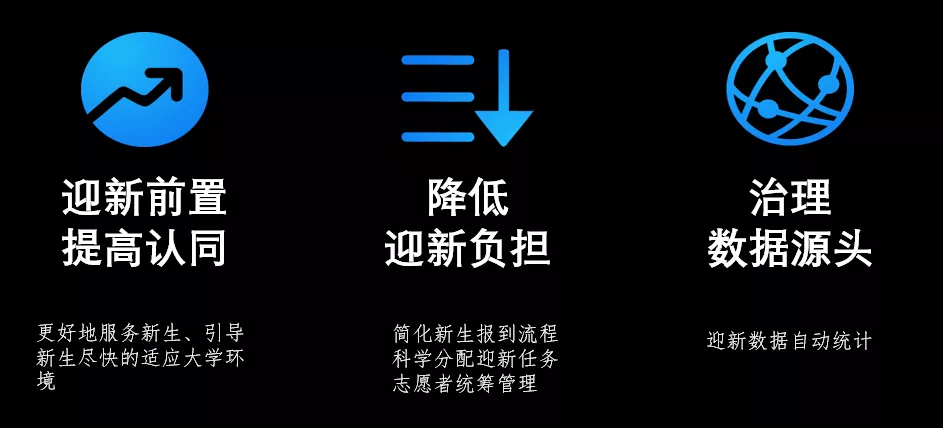 智慧迎新系统,体现了我校学生管理工作的温度、关爱、无微不至,是学校智慧校园建设的重要成果之一,体现了“以生为本”的服务理念,极大的提升了迎新工作的质量和效率,在细微之处让新生感受智慧与温暖,在新生与学校的第一次亲密接触中,运用现代科技和更人性化的举措带给新生难忘的入学体验。