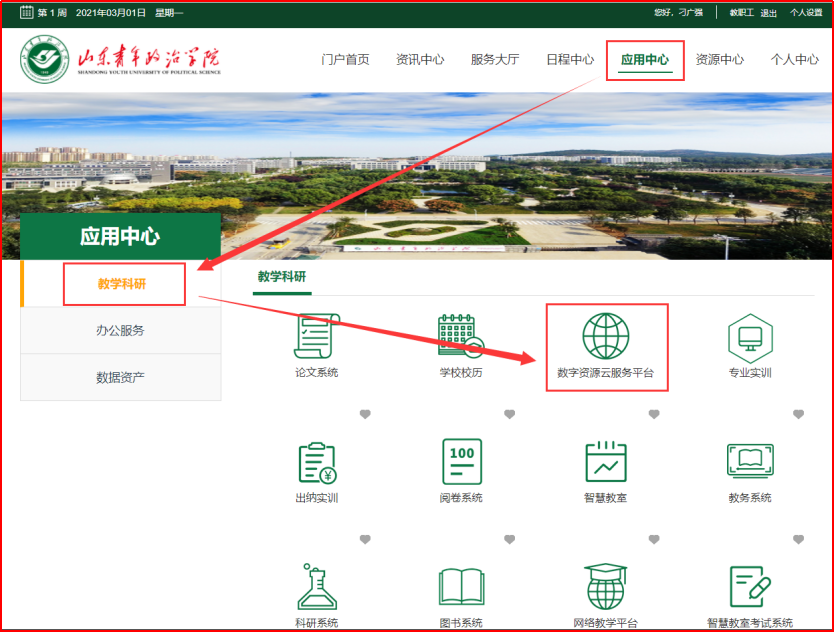 学校智慧校园融合门户网址为:http://y.sdyu.edu.cn
