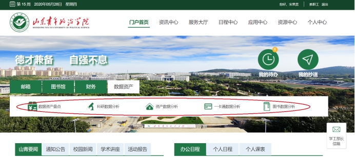 PC端:推荐使用chrome内核浏览器(360浏览器极速模式等)登陆【智慧校园-融合门户】,在首页找到【数据资产】。