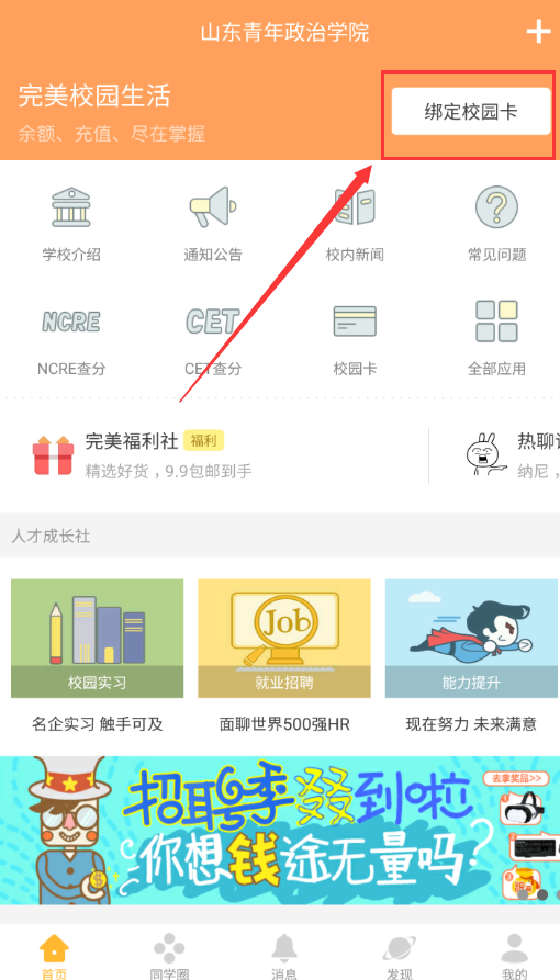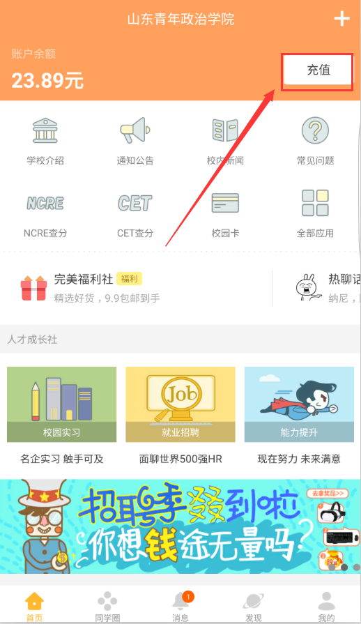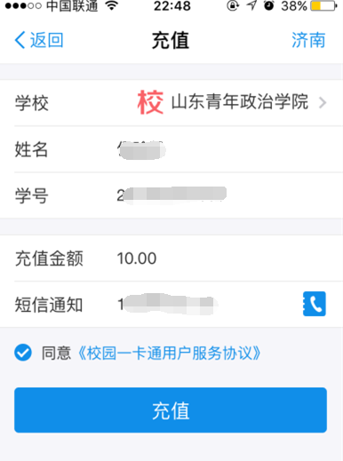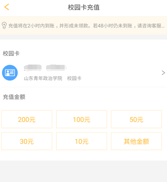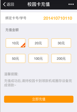 第五步:绑定后会显示校园卡余额,点击充值按钮。
