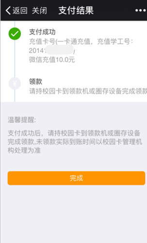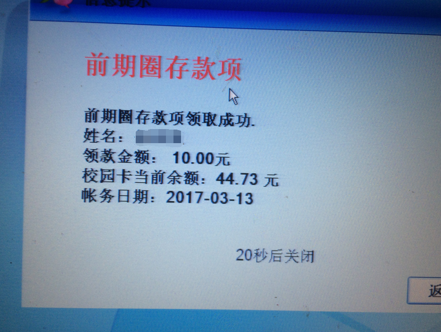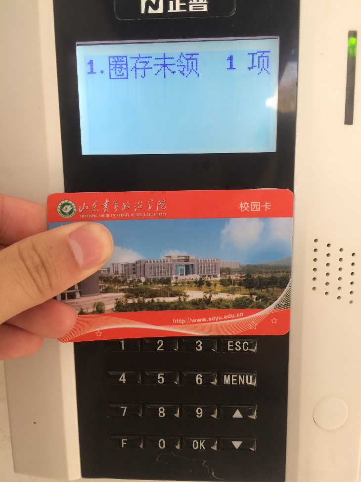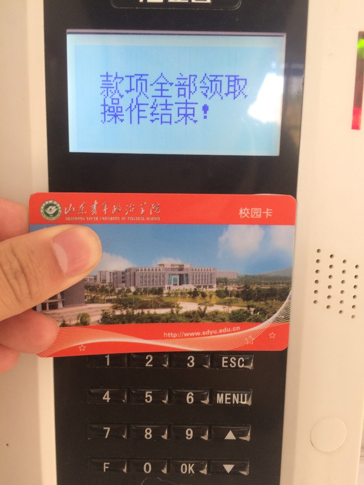步骤二:通过领款机、圈存机领款至校园卡(充值1分钟后)