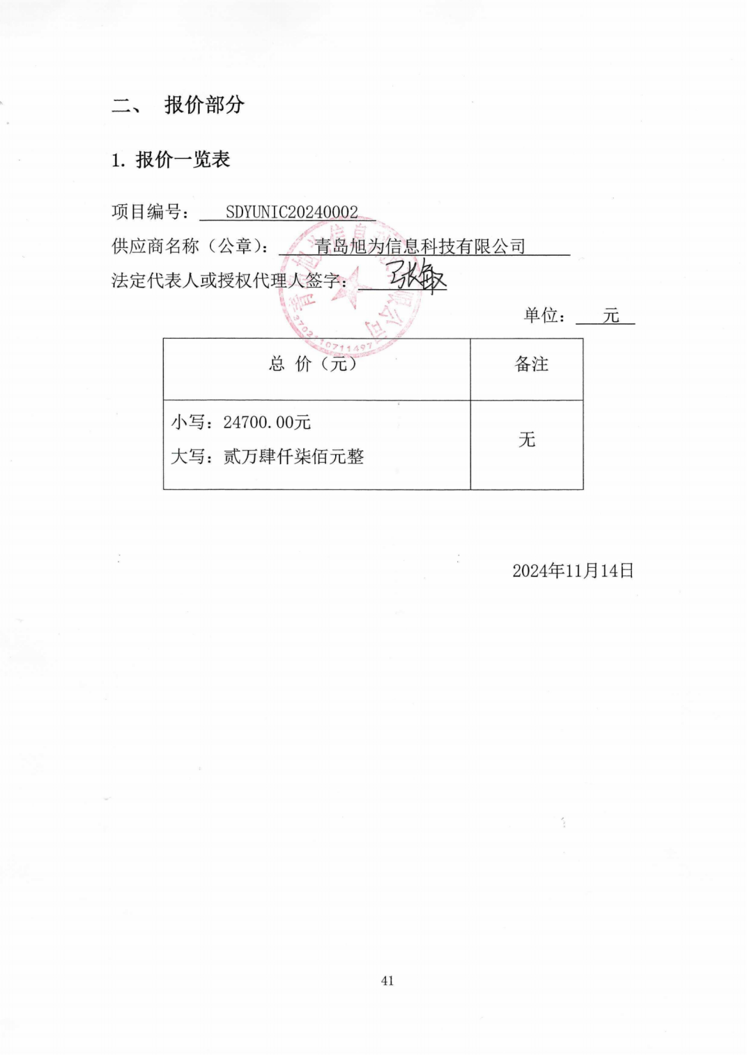 供应商名称:青岛旭为信息科技有限公司