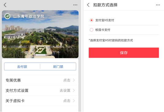 山东青年政治学院“支付宝”电子校园卡是内置于手机“支付宝”APP卡包中的虚拟卡,用户使用手机“支付宝”APP就可以在学校餐厅等场所进行消费。